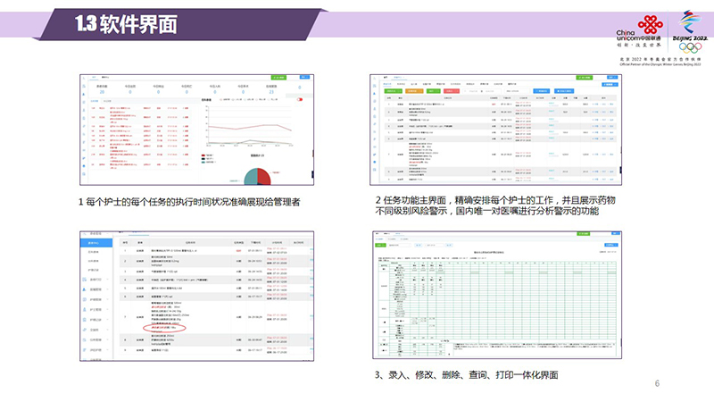 以“任务”为主导的重症护理信息系统:以护理管理为核心,为医护人员提供一体化的护理平台,落实医院护理的同质化、规范化、实时化的要求,帮助护士为患者安全服务。